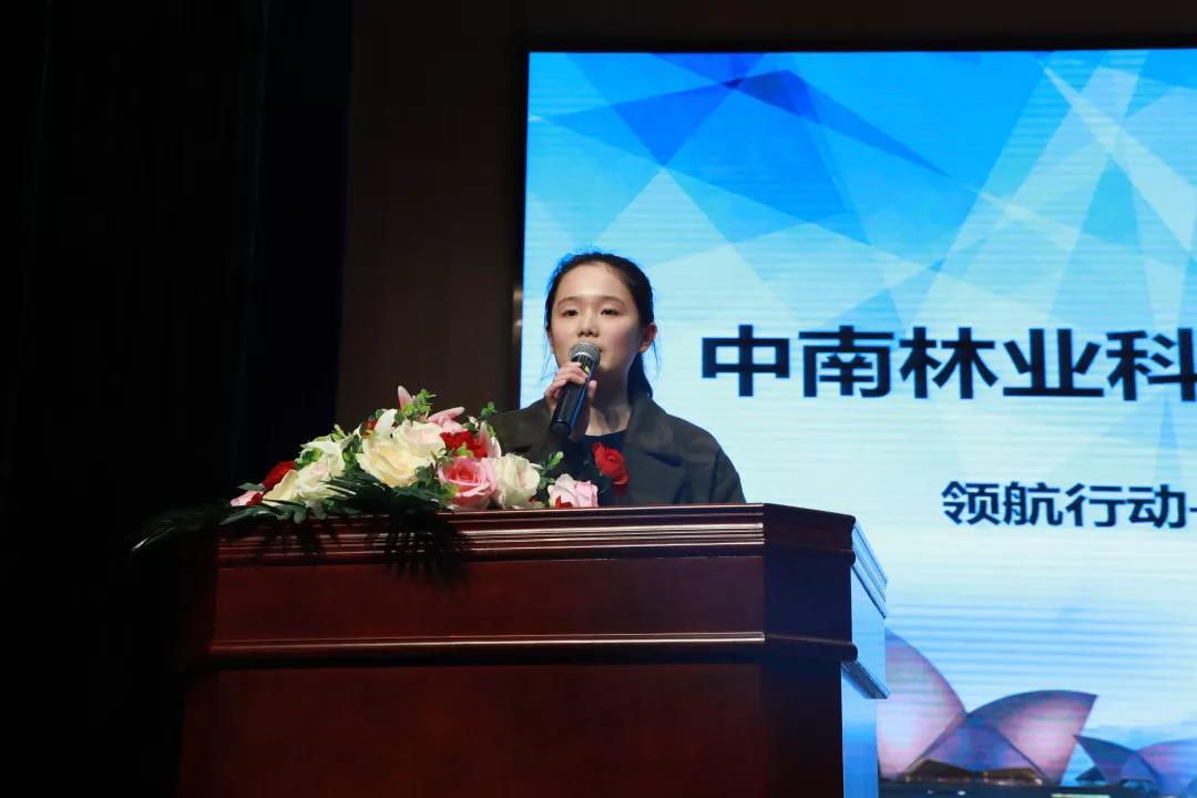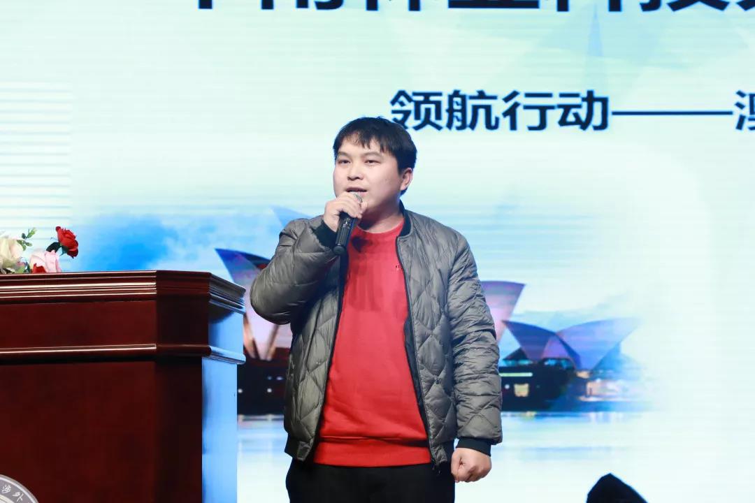随后外国语学院2017级英语专业任汝婷作为澳洲团团员代表上台进行了发言,她用一口流利的英语表达了她此番出行的初衷以及期望。