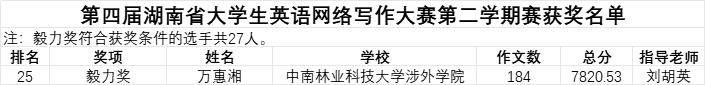 喜报 ! 2023白菜网总站大全600cc全讯白菜自助注册师生在第四届湖南省大学生英语网络写作大赛中斩获佳绩