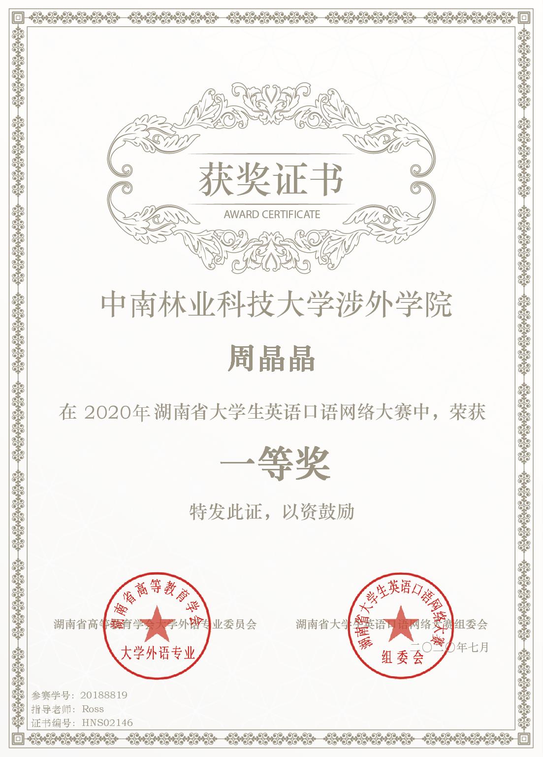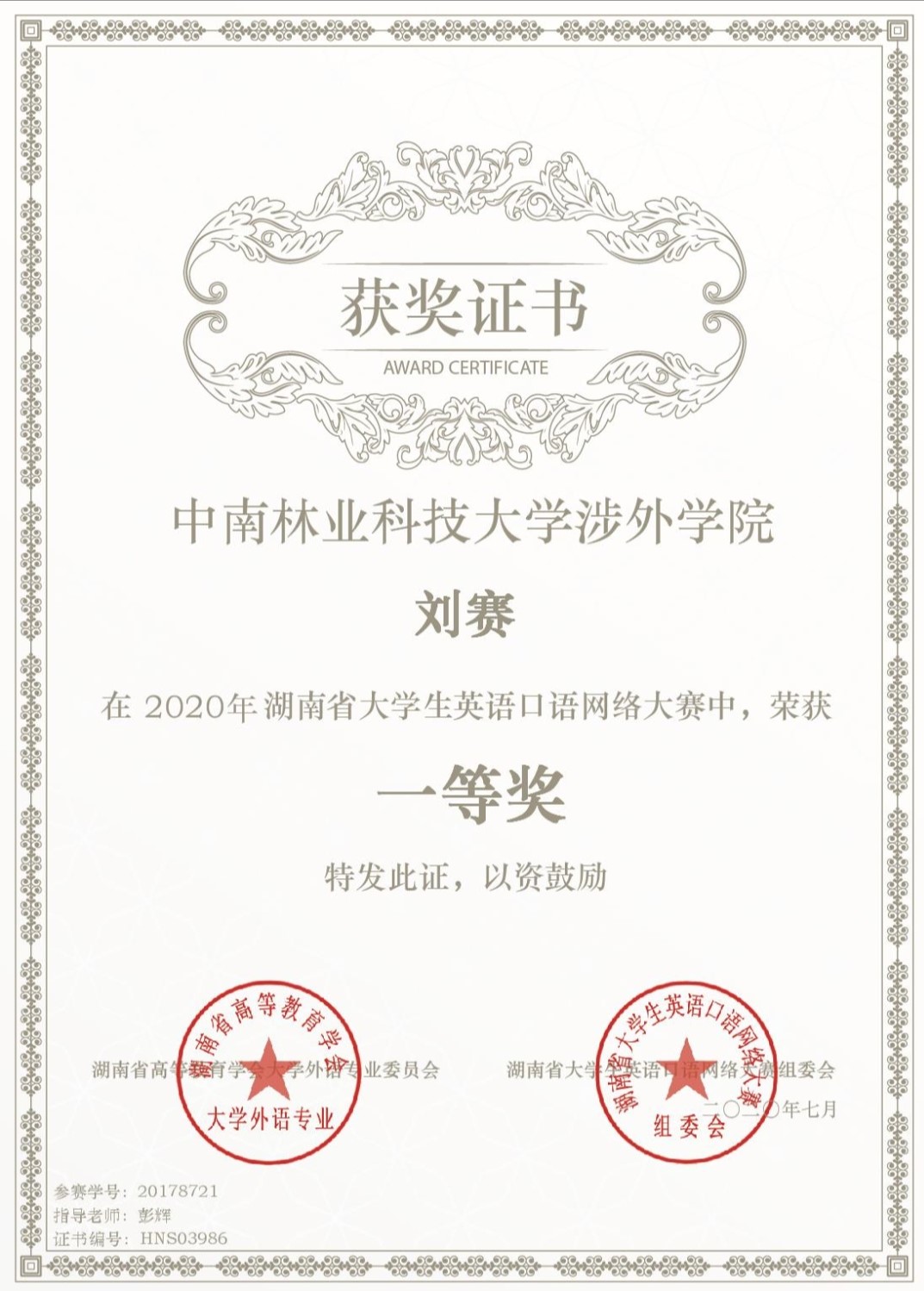 中南林600cc全讯白菜自助注册学子在湖南省第二届大学生英语口语网络大赛以及2020“外研社·国才杯”全国英语写作大赛再创佳绩