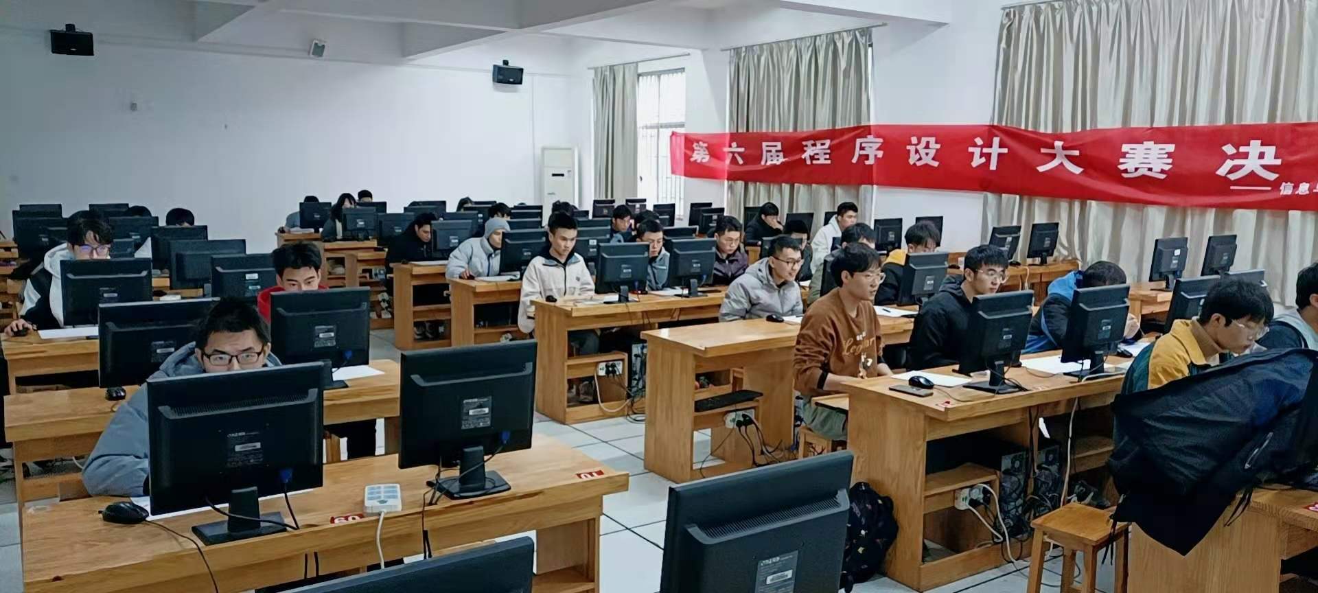 为进一步丰富校园文化生活,充分展示大学生良好的精神面貌,提高大学生综合素质和程序编码水平,提高学生的思维能力,动手能力与创新能力,培养良好的学习交流氛围,帮助同学们提前适应如蓝桥杯、ACM竞赛等程序设计比赛的氛围,让同学们在实践中发现不足,在不足中总结经验,在总结中提高能力。于2020年12月3日下午2点,由信息与工程学院主办的"第六届程序设计大赛决赛"在第二实验楼4203机房如期举行。