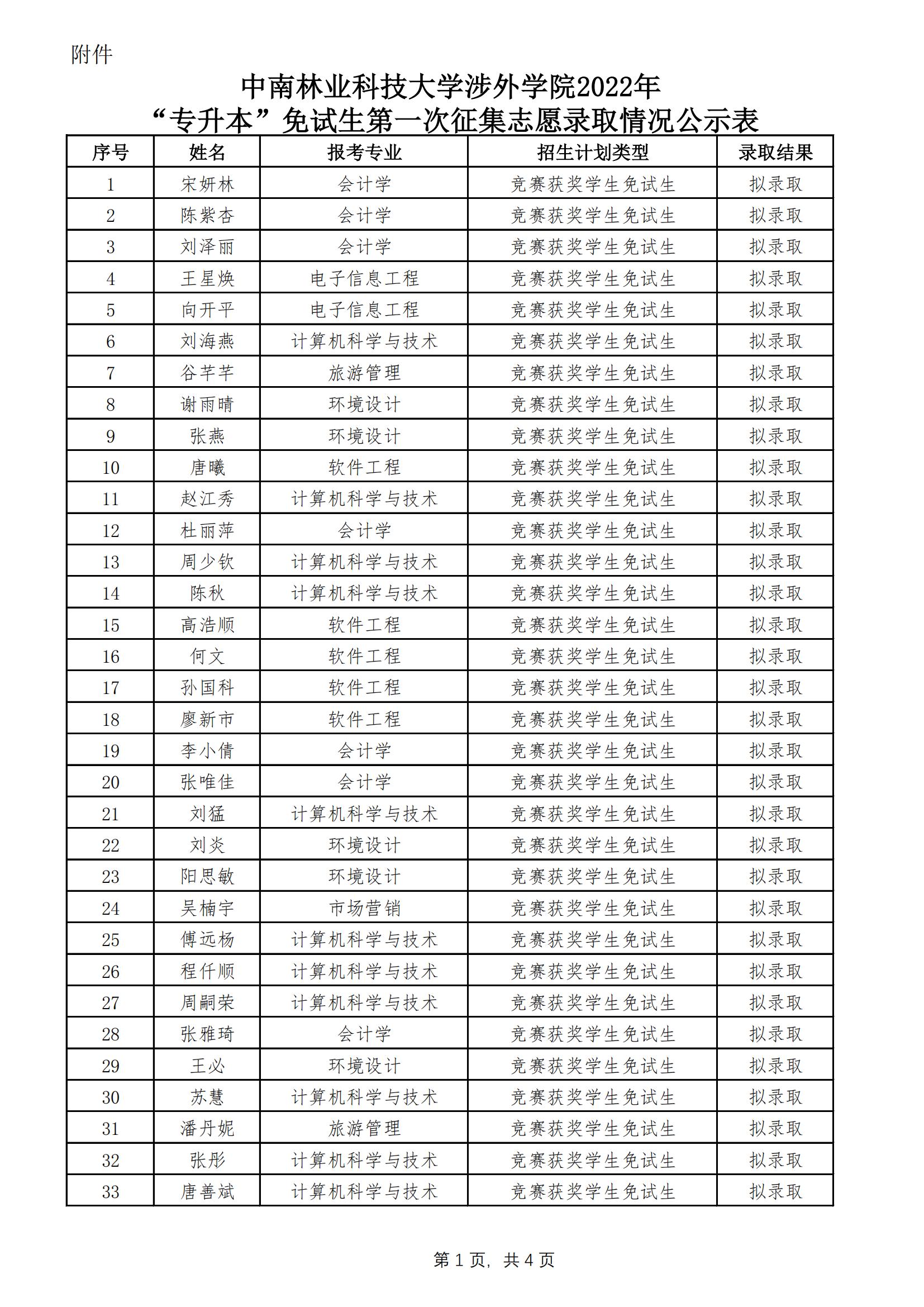 现将2022年2023白菜网总站大全600cc全讯白菜自助注册专升本考试免试生第一次征集志愿录取情况进行公示,具体名单见附件,公示时间为2022年4月20日-21日24时。如有异议,请在公示时间内向学院纪检部门反映。